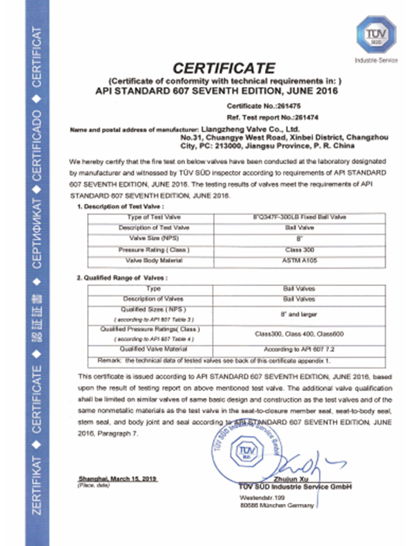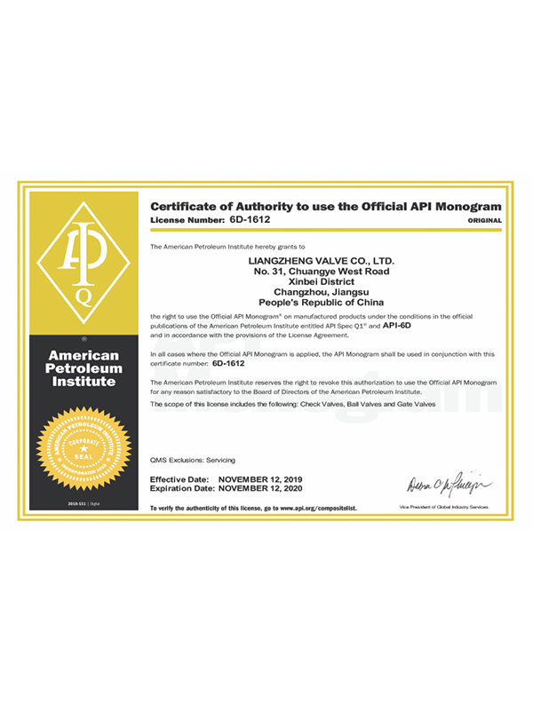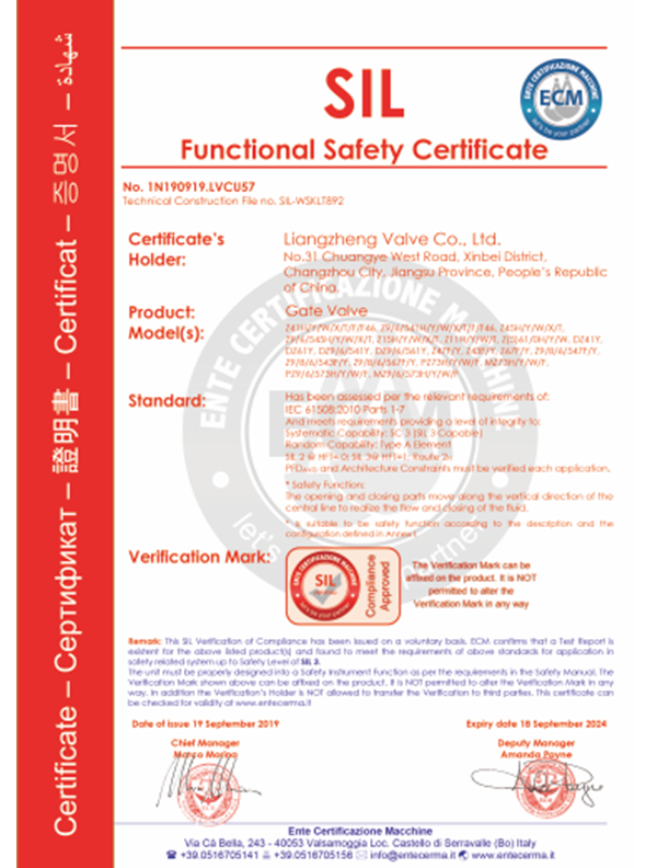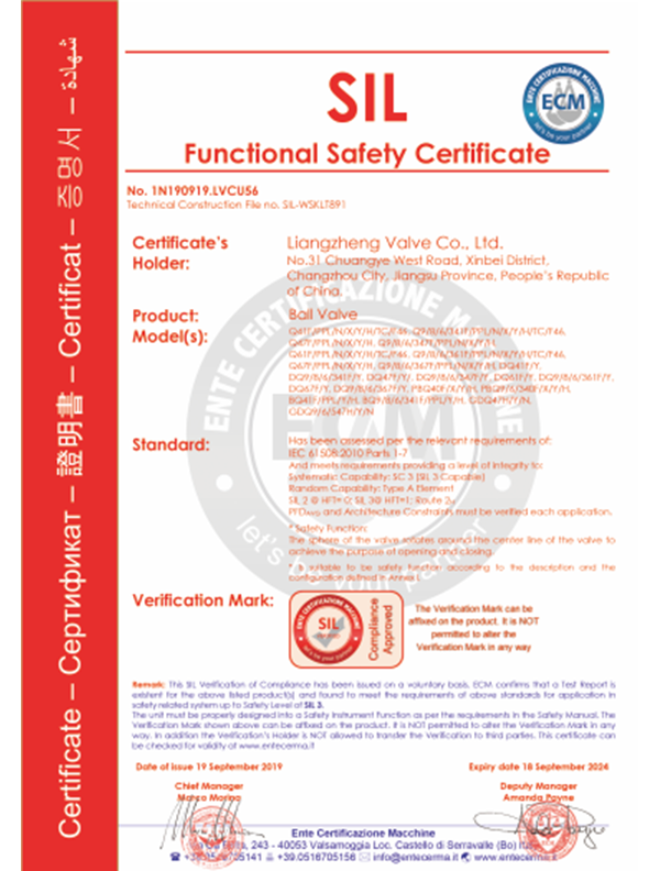 Liangzheng valves have passed the "TS" special equipment manufacturing license A level certification, API6D American Petroleum Institute certification, ISO9001 international quality system certification, ISO14001 environmental system certification, ISO45001 occupational health and safety management system certification, Germany TUV issued API607 fire certification, SIL3 Safety assessment certificate, CE EU certificate, two integration certificate, intellectual property rights implementation certificate, AA measurement, AAA measurement system and other certificates.