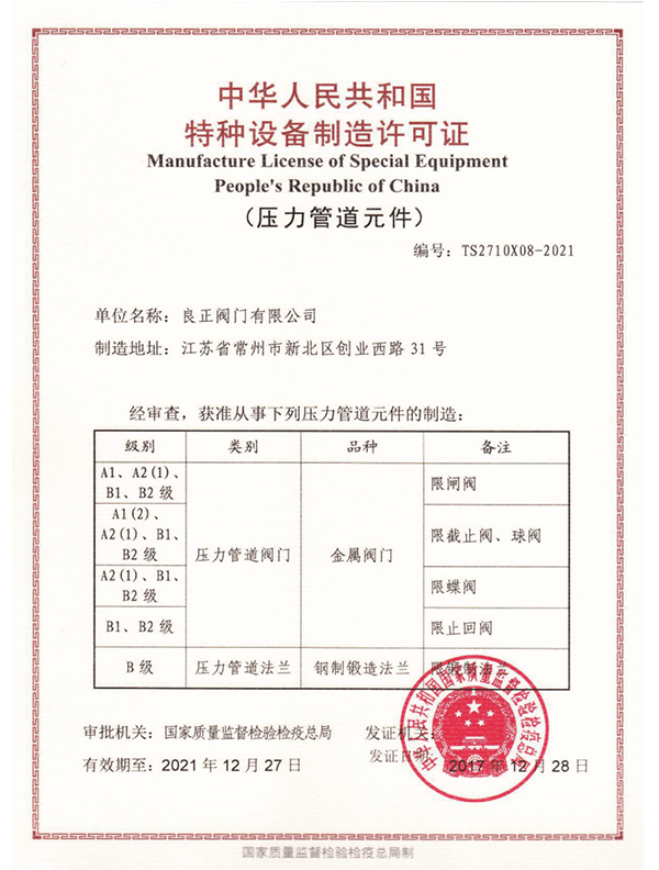 In January 2016, Liangzheng Valve successfully listed in Jiangsu Stock Exchange, we are very honored to become one of the few Chinese valve manufacturing enterprises listed on the stock exchange. The company has successively become a material supplier of China National Petroleum Corporation Limited, a material supplier of Sinopec, a material supplier of CNOOC, a finalist supplier of China Gas Group, a finalist supplier of China Resources Gas Group, a finalist supplier of Kunlun Energy, a finalist supplier of ENN Gas Group, a partner of Gang Hua Gas Group, a finalist supplier of Shenzhen Gas Group, and a finalist supplier of Chongqing Gas Group Wei supplier, Taiyuan Natural gas finalist supplier, Hangzhou Natural Gas finalist supplier, Shenyang Gas finalist supplier, Teda Binhai Gas Group finalist supplier, Xinjiang North Fuel finalist supplier, Baichuan Energy Group finalist supplier, Kuangyuan Energy Group finalist supplier, Ord Energy Group finalist supplier, Xinjiang Guanghui Energy finalist supplier, Jinhong Energy Group finalist supplier , petrochina Zhongtai Gas Group finalist supplier, Zheneng City Gas finalist supplier, Tianlun Gas Group finalist supplier, Fisher Jiuan (Emerson) important supplier, Shanghai Feiao important supplier, Yanchang Oilfield finalist supplier, Luxi Chemical finalist supplier, Sanfangxiang Group finalist supplier, Shenhua Guoneng Group, Huadian Group, Guodian Group, Huaneng Group, Datang Group Several major power plant supplier members, two provincial high-tech products identified, the first set of provincial valves identified, the company's production of valves have been issued by the national valve testing center type test certificate.